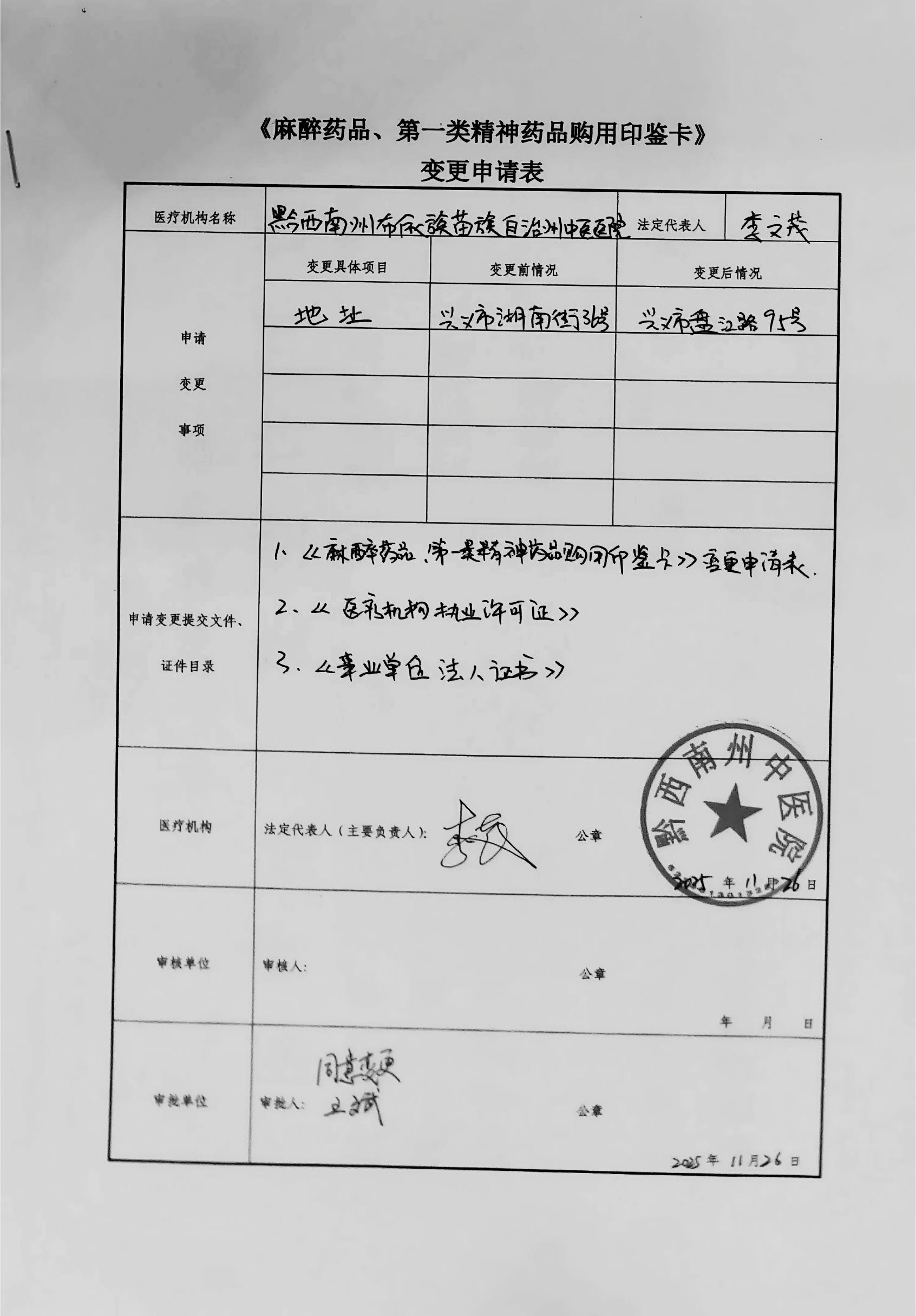關(guān)于黔西南州中醫(yī)醫(yī)院醫(yī)療機構(gòu)購用麻醉藥品、第一類精神藥品許可(變更)的公示